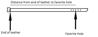 • The way I measure the size of a belt is from your favorite hole on your existing belt to the end of the leather on at the buckle end.